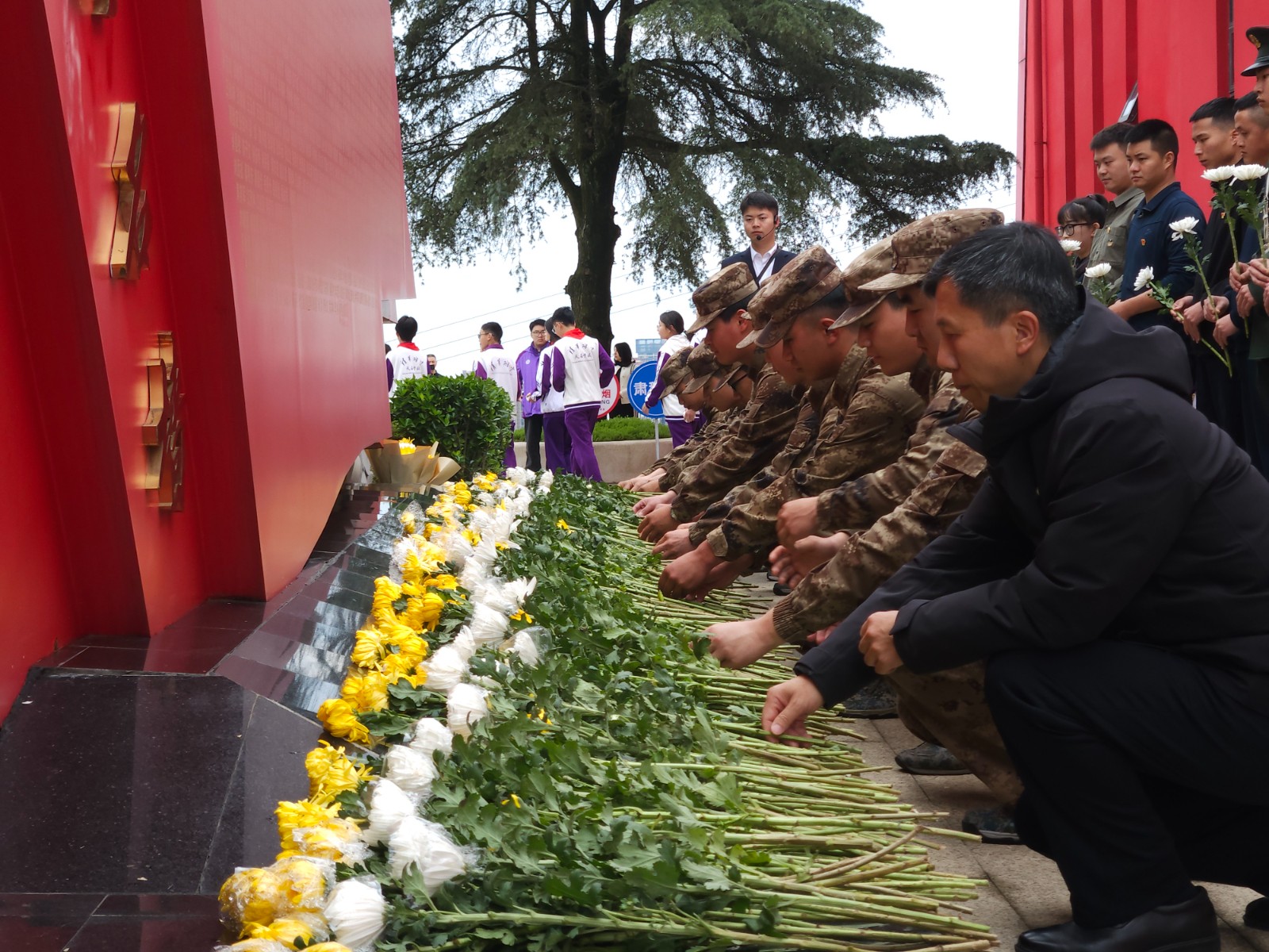 纪念哀悼仪式结束后,师生代表缓步上前,向烈士纪念碑敬献花篮,寄托全院师生的缅怀之情。全体祭拜人员手持白色菊花,有序瞻仰烈士纪念碑与烈士墓区,依次献上鲜花,追思先烈功绩。