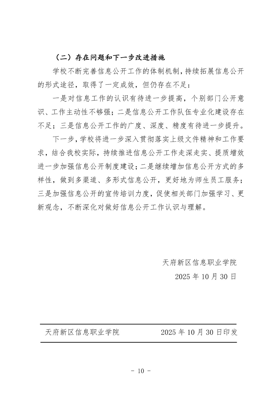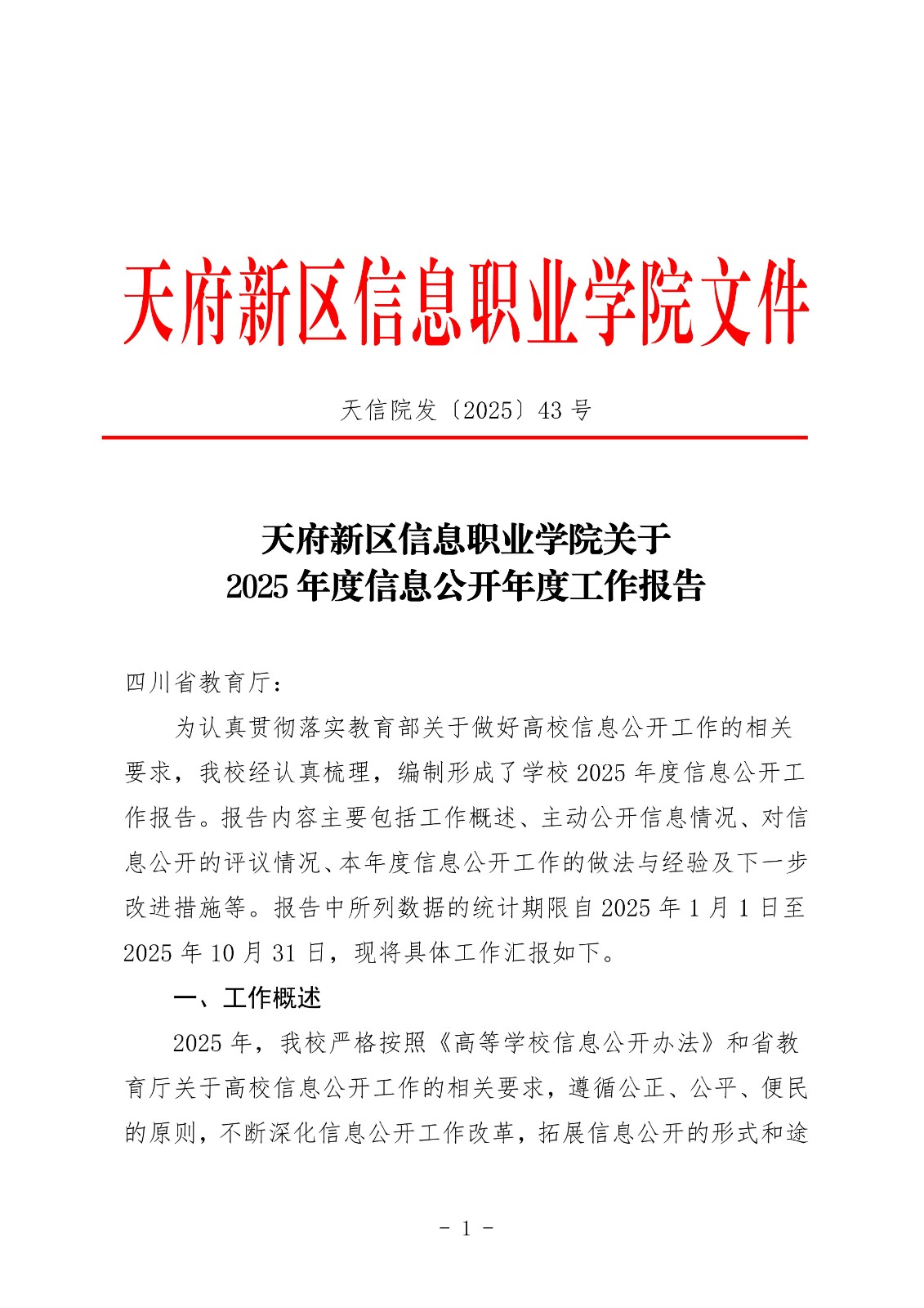 天府新区信息职业学院关于2024学年信息公开年度工作报告
