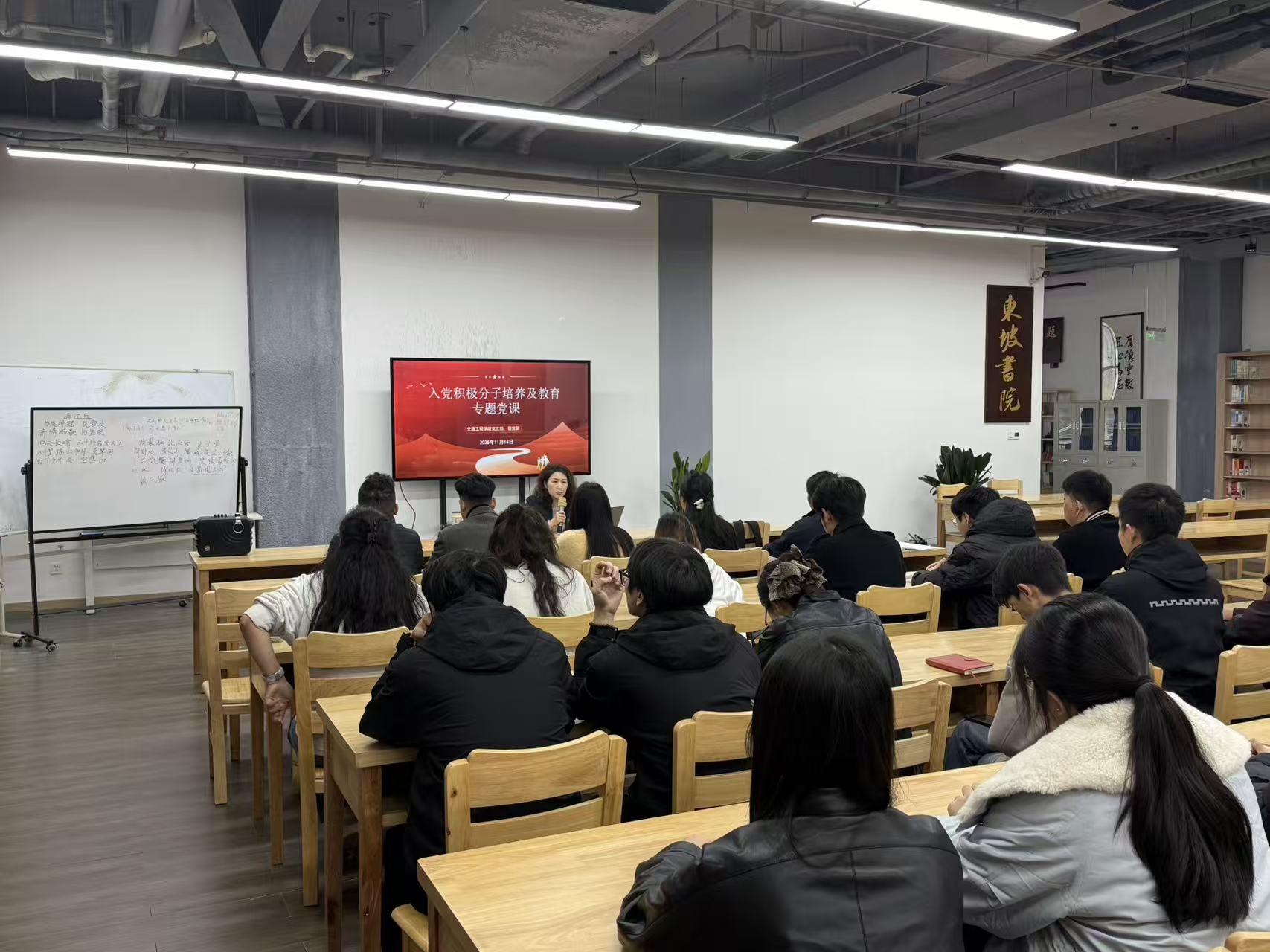 青春心向党,青年勇担当。为全面贯彻习近平新时代中国特色社会主义思想,深入贯彻习近平总书记关于青年工作的重要思想,团结带领广大团员青年永远跟党走、奋进新征程,进一步继承和发扬共青团优良传统,增强团组织的凝聚力,提升团员的荣誉感和使命感,12月18日,交通工程学院在二教204举办了新团员入团仪式,仪式由院学生会组织部部长聂停利主持,交通工程学院团总支书记、学生科副科长付蔓箐,23级及24级辅辅导员吴明江、钟勇、雷宇、罗希玥和162名新团员参加了仪式。
